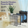 - Powerful Filtration: Moreover, the high-efficiency filter captures 99.97% of ultrafine particles sized 0.1-0.3μm, such as pollen, dust, and pet dander allergens. This powerful filtration is independently lab-tested, guaranteeing top performance and air quality improvement.